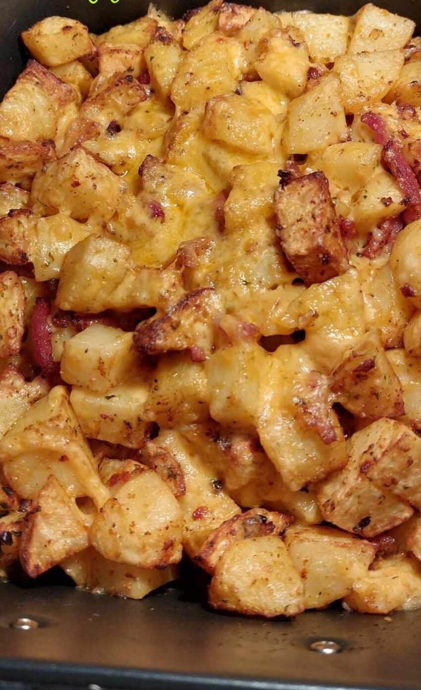 Air Fryer Cheddar, Onion, and Bacon Potatoes