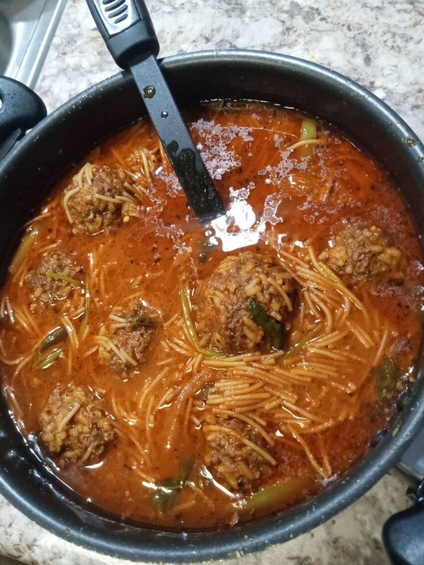 - Ladle the albóndigas and fideos into bowls, making sure to get a good amount of broth, meatballs, and vegetables in each serving.