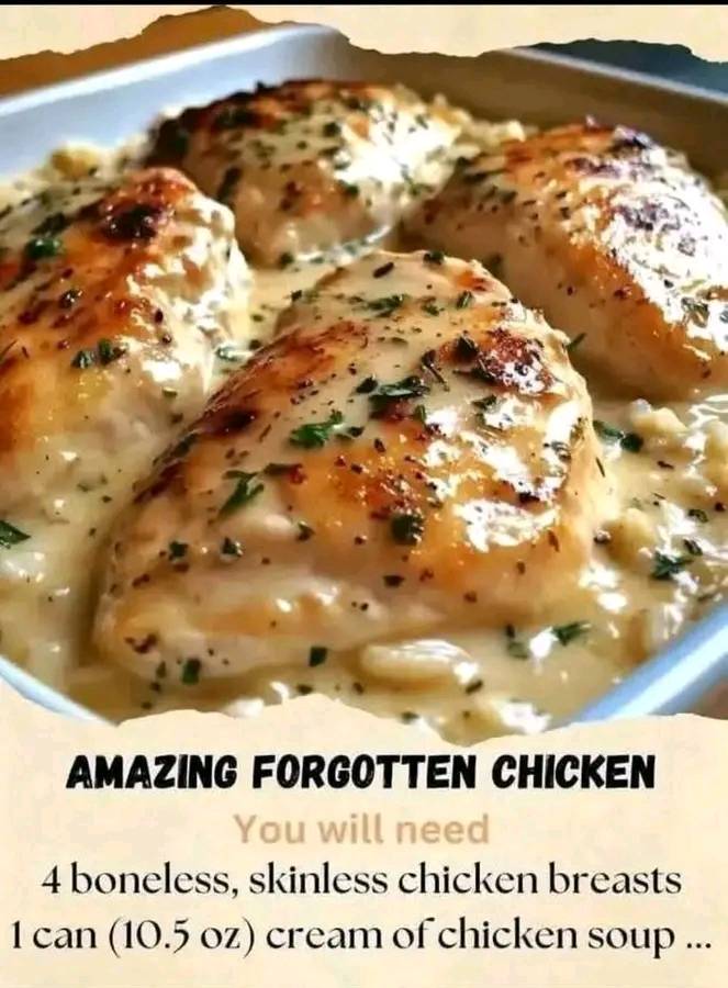 Here’s a classic, cozy casserole recipe known as “Forgotten Chicken” — named because you just mix it, pop it in the oven, and forget about it until it’s perfectly done! It’s creamy, savory, and super easy.