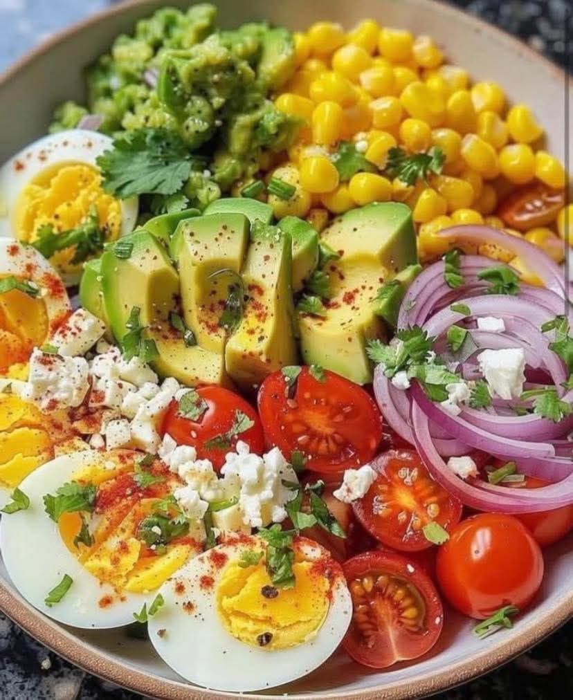 An Avocado Salad with Tomato, Eggs, and Dressing is a simple, refreshing, and nutritious dish. The creamy avocado, juicy tomatoes, and protein-packed eggs make it a perfect side dish or a light meal on its own. Here’s an easy recipe to make this healthy and delicious salad: