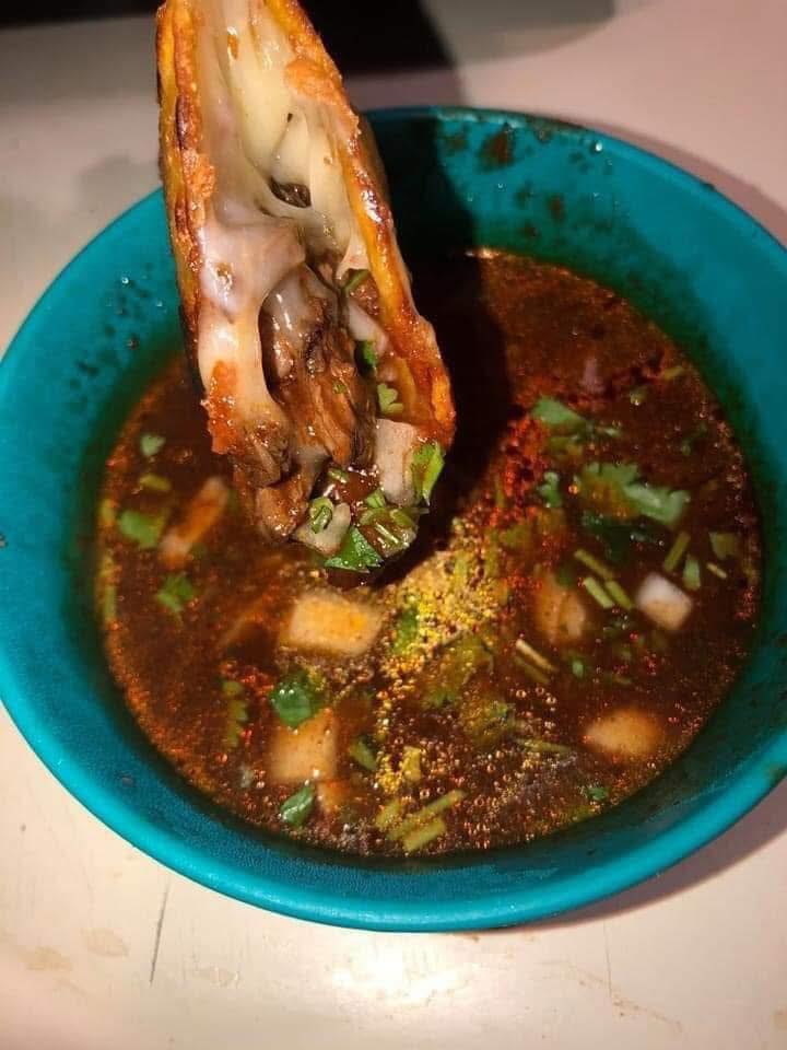 Lightly dip each corn tortilla in the birria broth to coat (don’t soak too long).