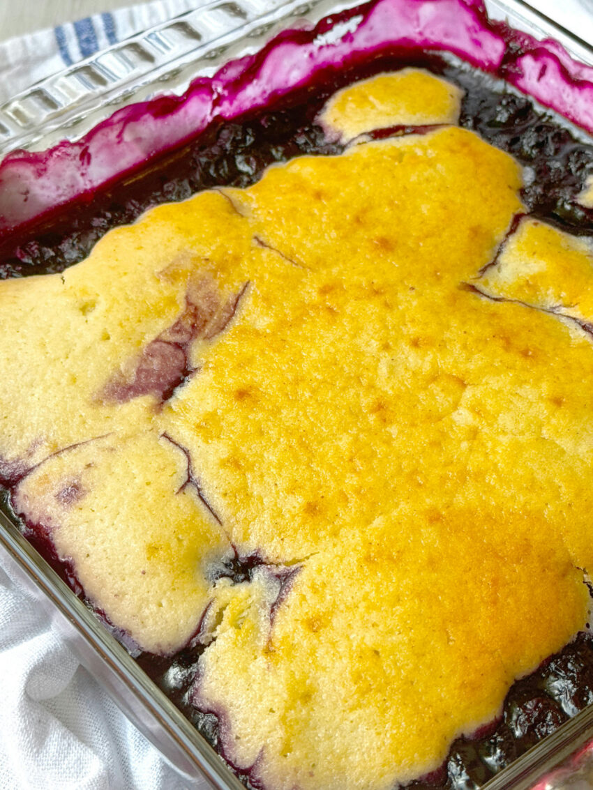 Bake for 45–55 minutes, or until the topping is golden brown and cooked through, and the blueberries are bubbling.