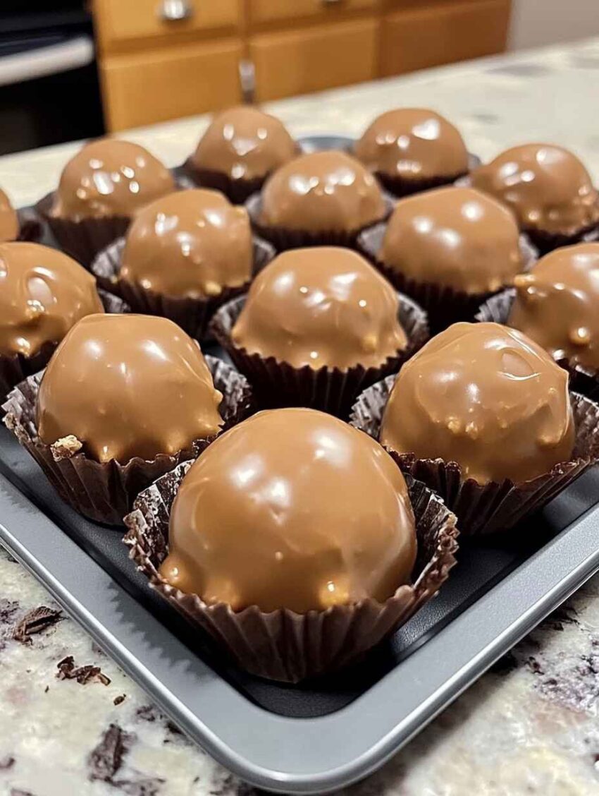 Place on parchment paper: Return the dipped balls to the parchment-lined baking sheet. If you have any leftover melted chocolate, you can drizzle it over the top of the balls for a decorative touch.