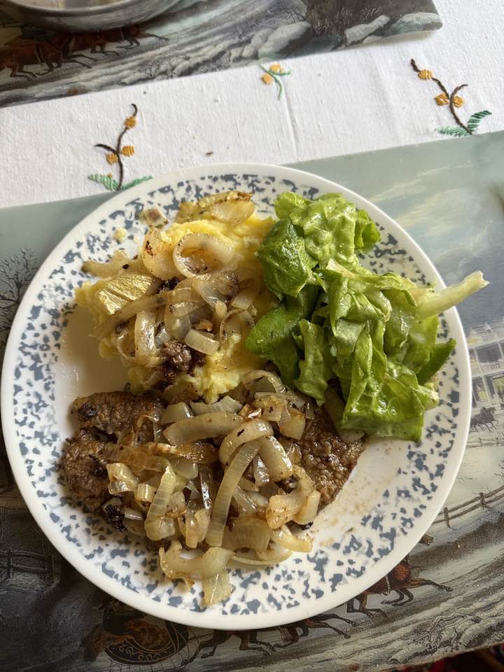 Calf Liver with Caramelized Onions, Mashed Potatoes & Green Leaf Salad