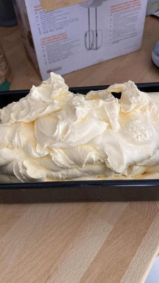 Once firm, scoop and enjoy! It’s rich and creamy — almost like frozen whipped butter with custard flavor.