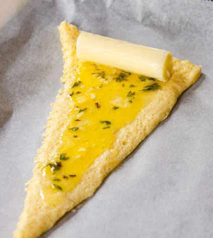 Unroll crescent dough and separate into triangles.
