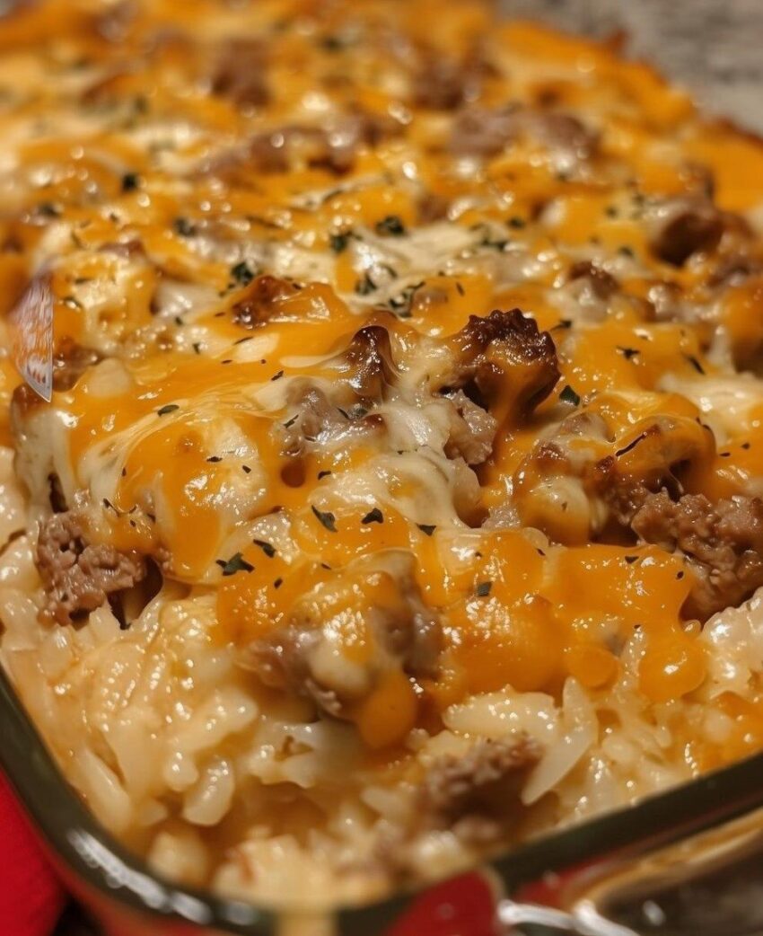 🧀🍚 Cheesy Ground Beef Rice Casserole