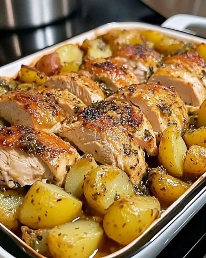 Here’s a comforting and super simple recipe for a Chicken and Potato Bake—a one-pan dish with juicy chicken, tender potatoes, and savory seasonings. Perfect for busy weeknights or a fuss-free weekend dinner!