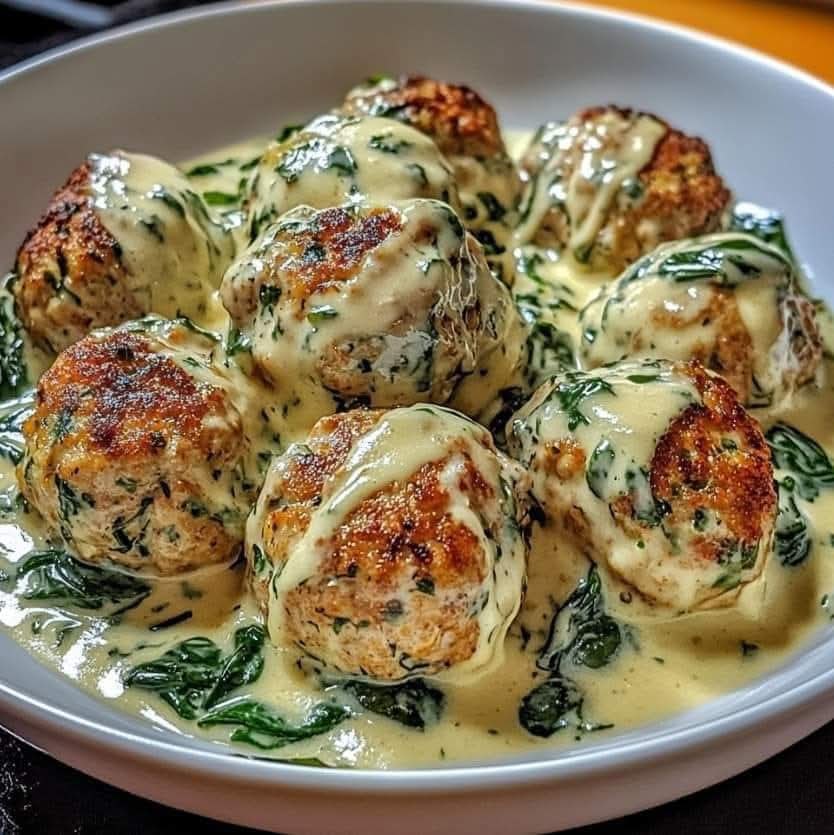 🍽️ Chicken Ricotta Meatballs with Spinach Alfredo Sauce