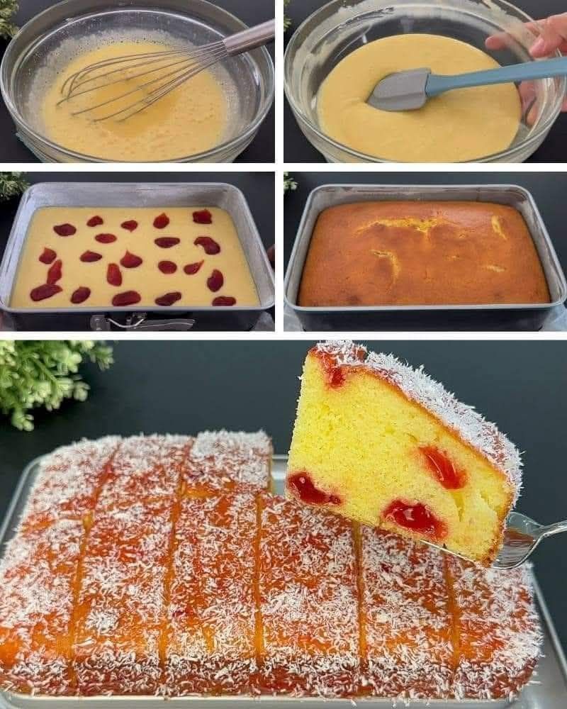Here’s a delicious Coconut Cherry Cake recipe for you! It combines the tropical flavor of coconut with the sweetness of cherries for a moist, flavorful dessert.