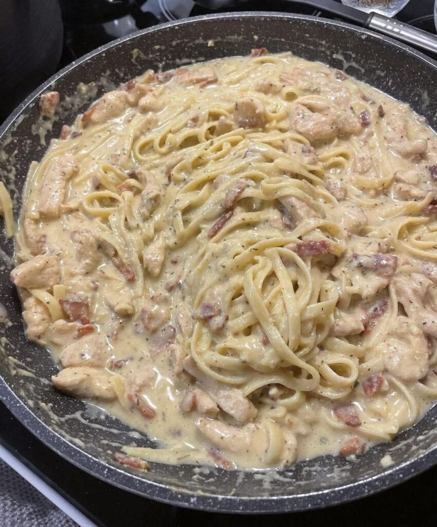 Here’s a rich, indulgent recipe for Creamy Chicken Carbonara — a delicious twist on the Italian classic. This version adds tender chicken and a creamy garlic-Parmesan sauce while keeping the smoky bacon goodness you love in traditional carbonara.
