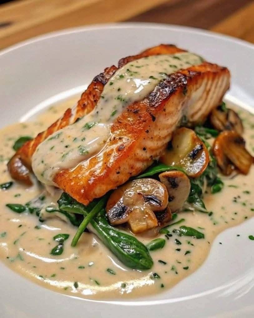 Creamy Garlic Butter Salmon with Spinach & Mushrooms