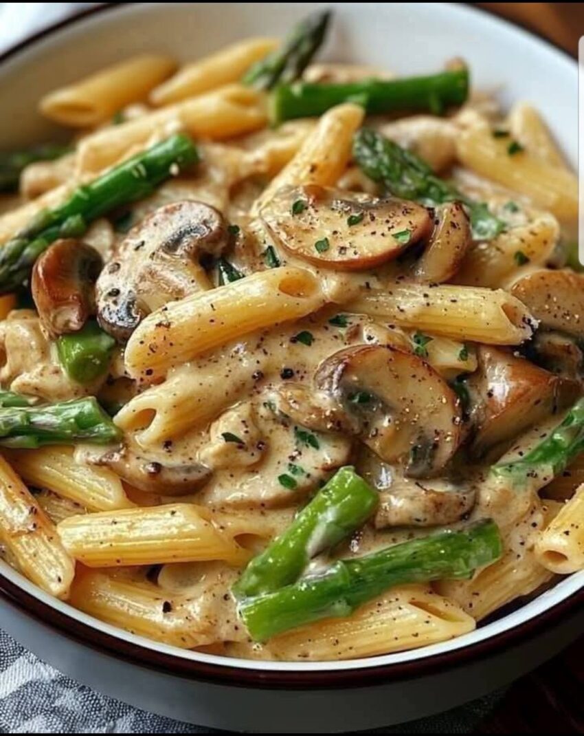 🍝 Creamy Mushroom and Asparagus Chicken Penne