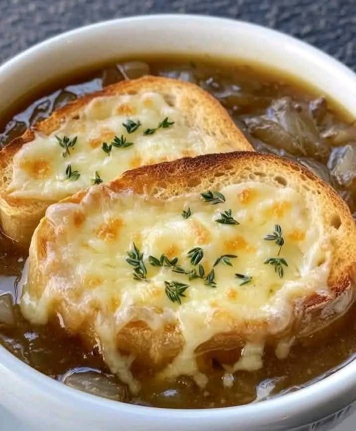Ladle soup into oven-safe bowls. Top each with a toasted slice of bread and plenty of shredded cheese.