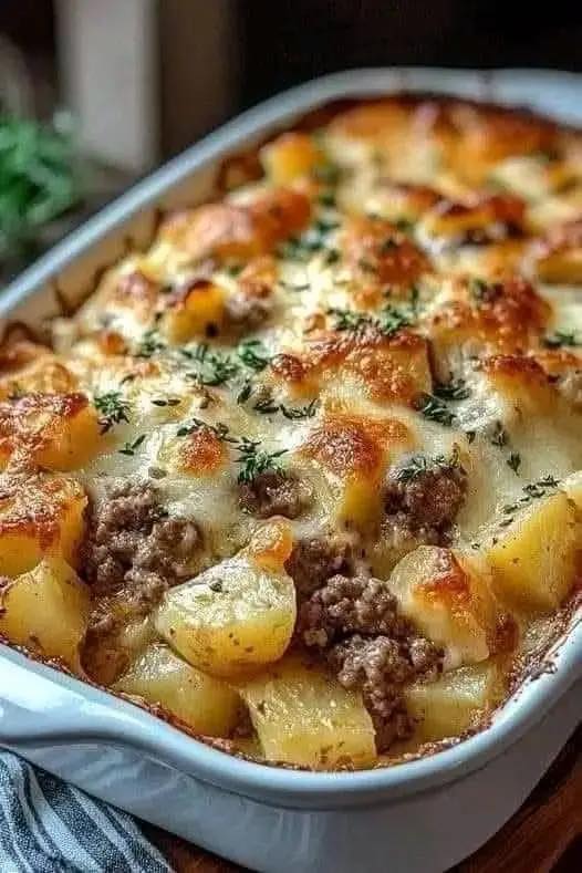 Here’s a simple and delicious Easy Hamburger Potato Casserole recipe that you can make with minimal ingredients and prep time: