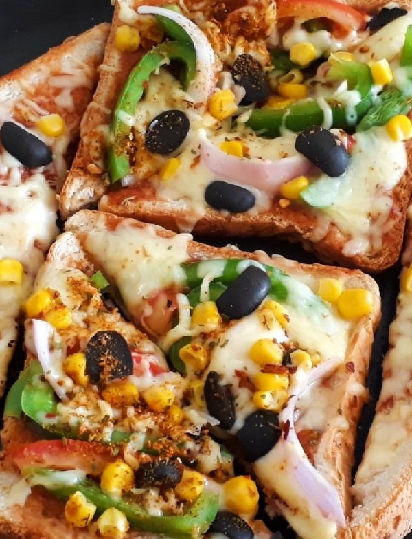 Breakfast Pizza Toast: Add scrambled eggs and cooked bacon or sausage.