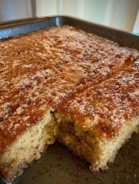 • Allow the cake to cool for about 10 minutes in the baking dish before cutting it into squares.