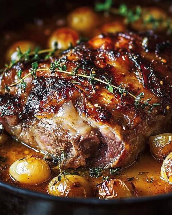 🍖 Épaule d’Agneau Confit au Four à l’Ail, au Miel et à la Moutarde