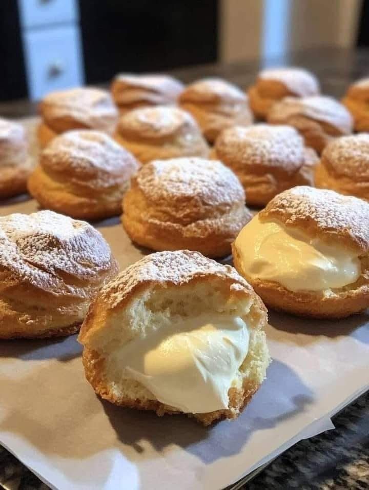 - Flavor variations: You can flavor the filling with chocolate, coffee, or even fruit (like lemon or raspberry). Just add flavorings to the whipped cream or pastry cream before filling the puffs.