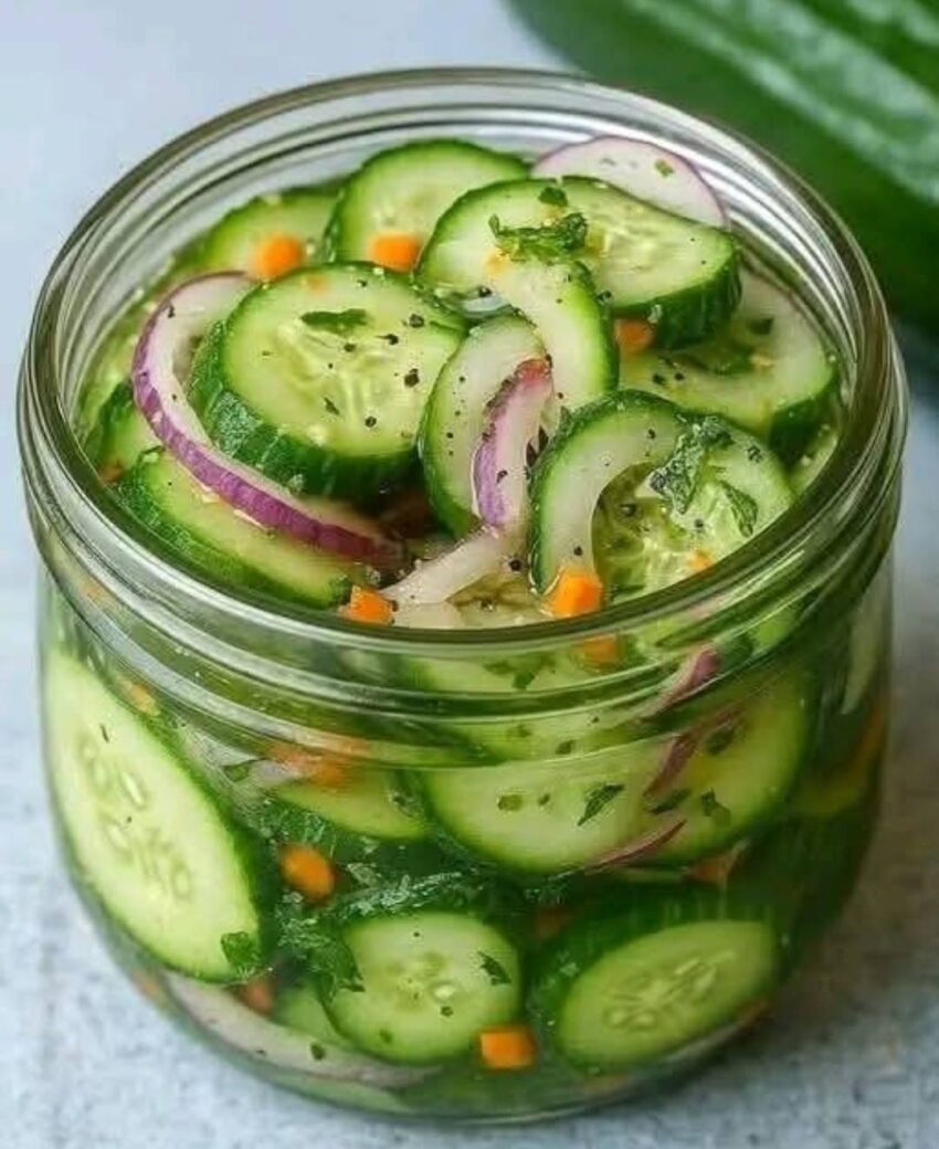 Here’s a crisp, tangy, and refreshing Fresh Pickled Cucumber Salad — the perfect side dish for grilled meats, sandwiches, or traditional dishes like schnitzel, BBQ, or rice plates. This quick-pickled version is ready in just 30 minutes (or even better after a few hours in the fridge).