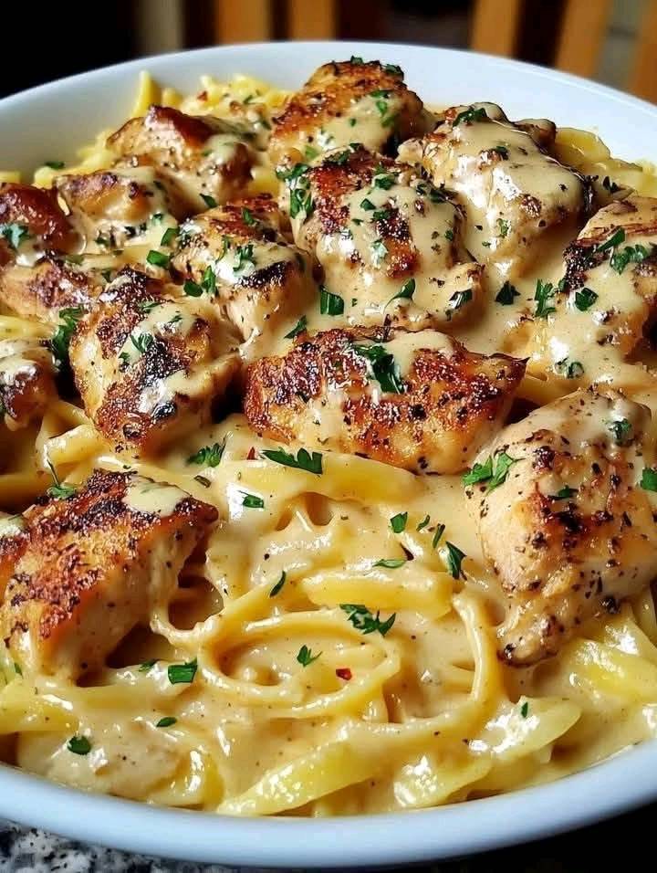 Here’s a complete and indulgent dish: Garlic Butter Chicken Bites with Creamy Parmesan Pasta. It’s a restaurant-style comfort meal made at home — juicy, golden chicken bites tossed in garlic butter and served over creamy, cheesy pasta.