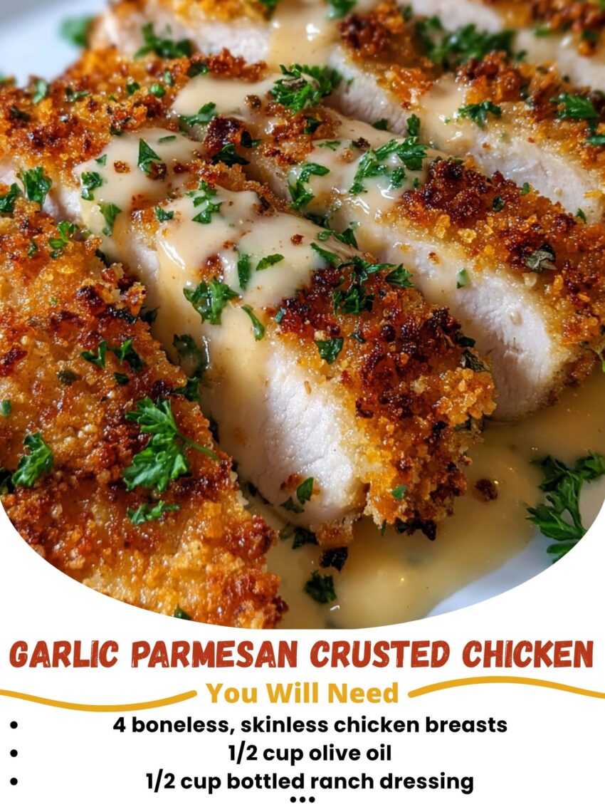 Here’s a crispy, juicy, and flavor-packed Garlic Parmesan Crusted Chicken recipe — golden on the outside, tender on the inside, and full of bold garlic and cheesy goodness. Great for dinner, meal prep, or impressing guests without much effort.