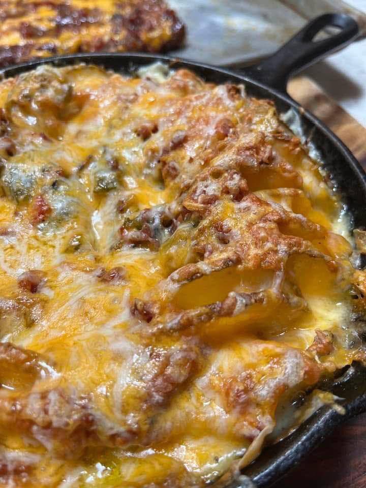 Here’s a rich, spicy twist on a classic comfort food: Green Chile Cheese Scalloped Potatoes. This dish is creamy, cheesy, and kicked up with roasted green chiles β perfect as a side for grilled meats, holiday spreads, or even as a main for vegetarians.