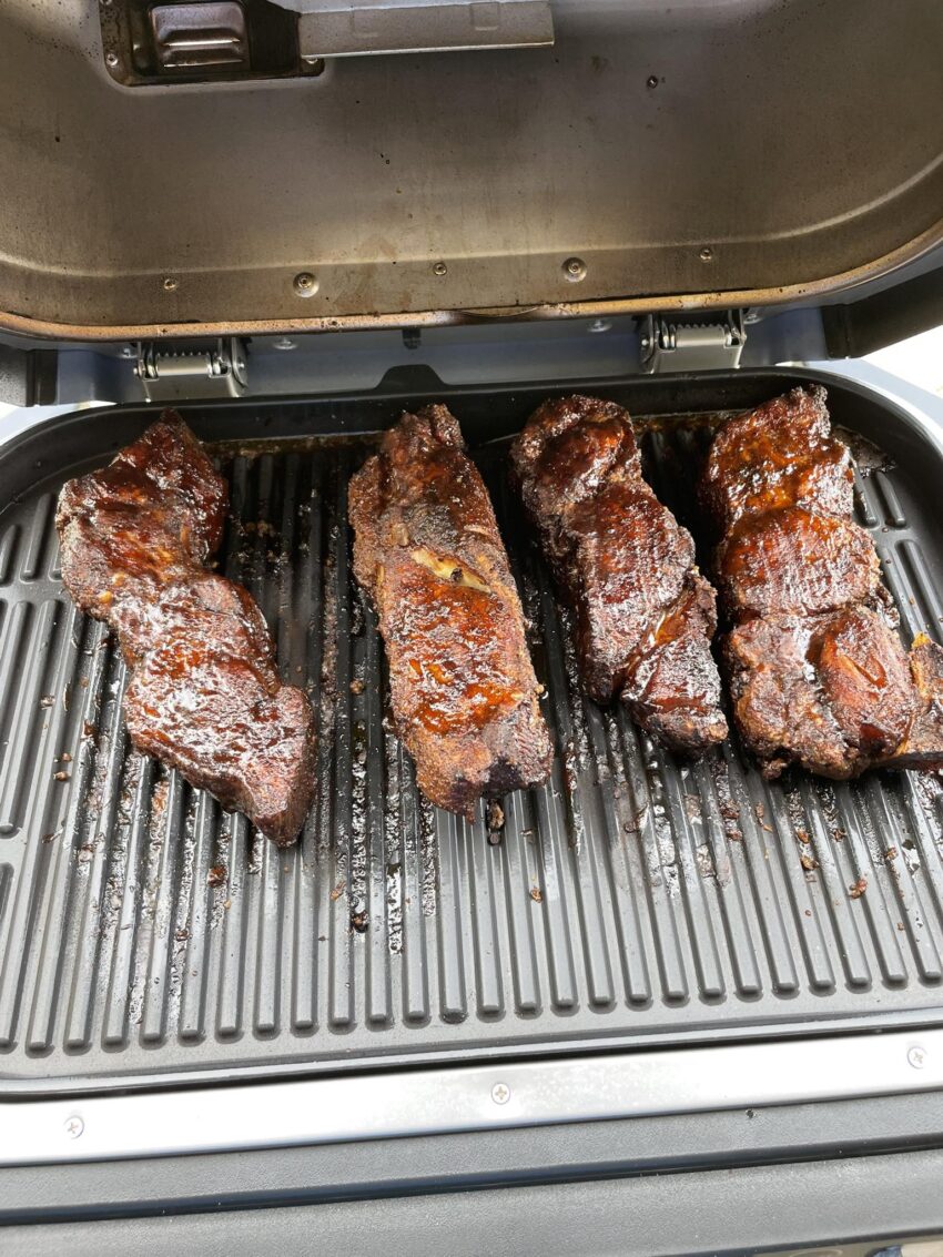 Remove from grill, tent loosely with foil, and rest for 15–20 minutes to let juices redistribute.