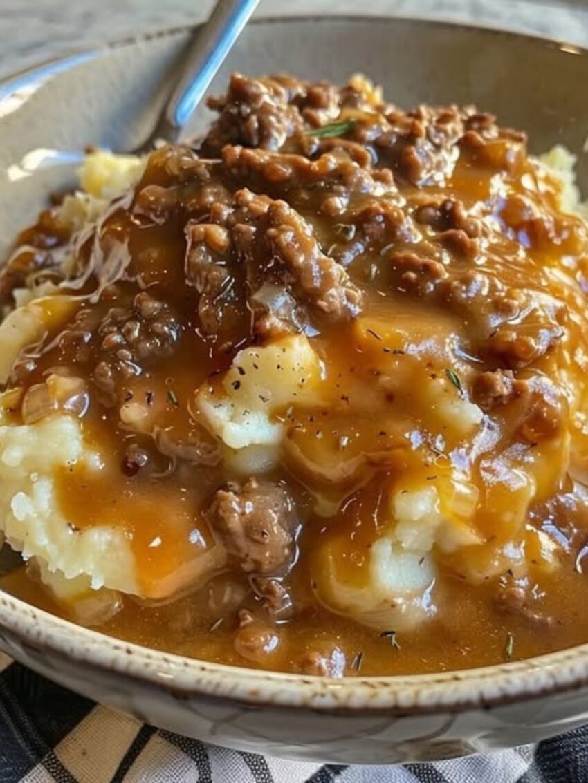 Here’s a comforting, classic recipe for Ground Beef and Gravy Over Mashed Potatoes — hearty, savory, and super satisfying!