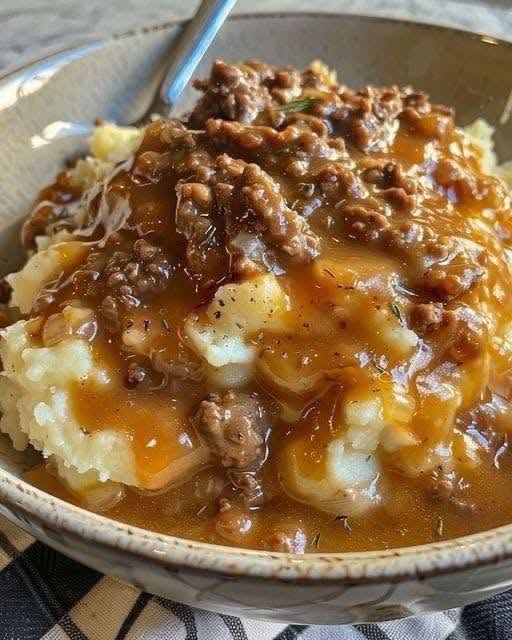 🍽️ Ground Beef and Gravy Over Mashed Potatoes
