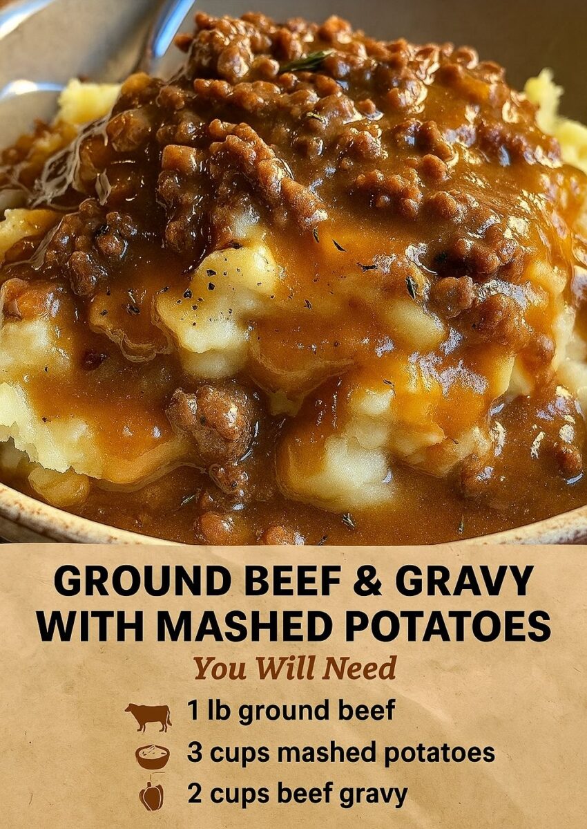 Here’s a classic, comforting recipe for Ground Beef & Gravy with Mashed Potatoes β€” hearty, savory, and perfect for cozy dinners.