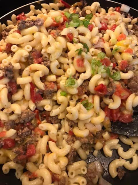 - Transfer the pasta and beef mixture into a greased 9×13-inch baking dish. Top with the remaining 1/2 cup of shredded cheese and sprinkle with Parmesan cheese if desired.