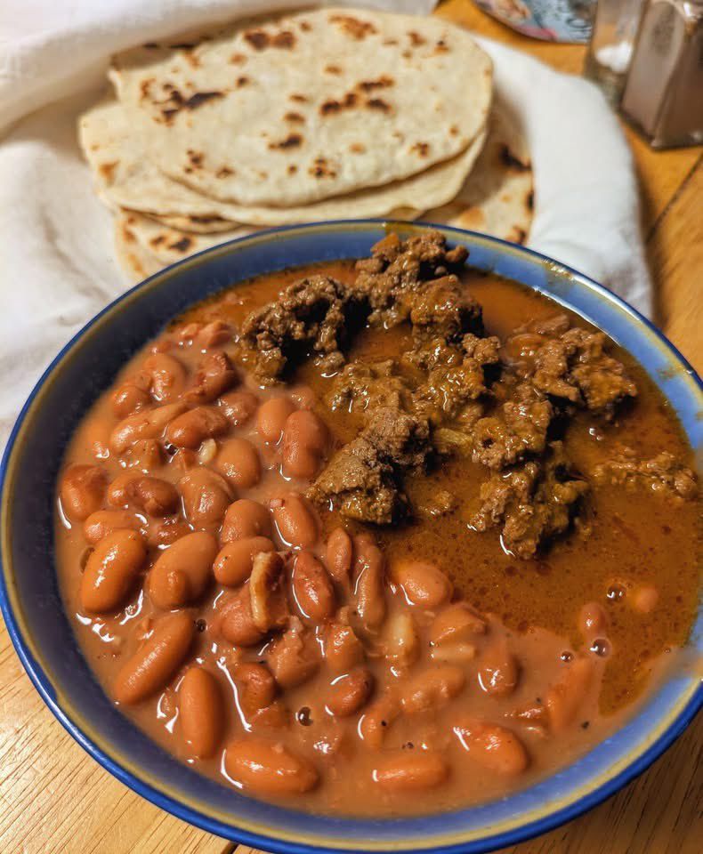 She added a splash of beer or strong coffee to the simmering chili for depth.