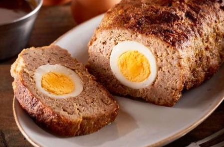 Cover with the remaining meat and shape into a loaf, sealing the eggs inside.