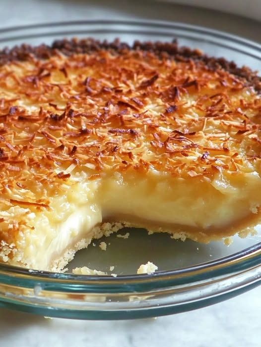 - Bake the pie for 45-50 minutes, or until the top is golden brown and the custard is set. You can check by inserting a knife into the center—if it comes out clean, it’s done. The pie should have a firm custard layer with a slightly crispy coconut top.