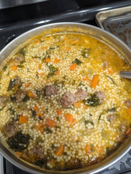 This soup is hearty, healthy, and perfect for a cozy dinner. The combination of the meatballs, greens, and pasta in the savory broth is just irresistible!