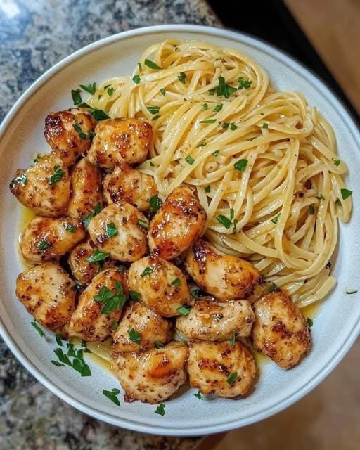 - Plate the pasta and chicken, and serve immediately. If you like, you can drizzle a bit more lemon juice on top for an extra zing!