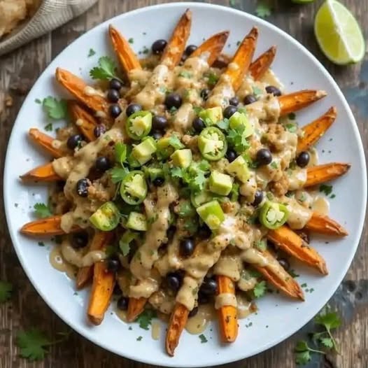 Loaded Sweet Potato Fries with Chipotle Lime Crema sound absolutely irresistible! The sweet and savory combo of crispy fries topped with flavorful toppings, and then drizzled with creamy, smoky chipotle lime sauce, is next-level. Here’s how you can make them at home: