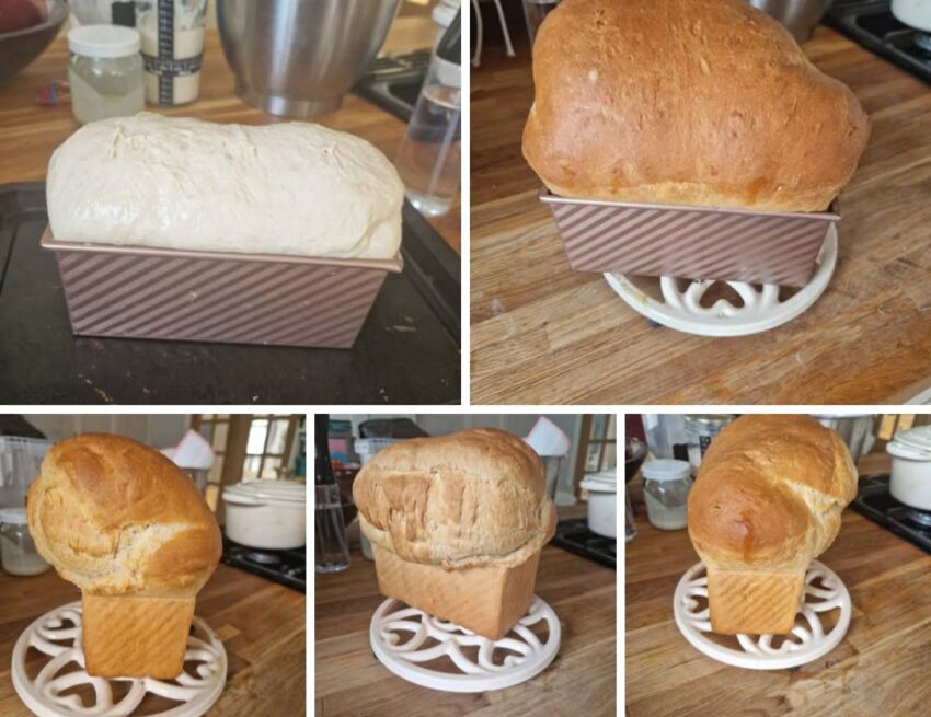 - When the bread is done, remove it from the pan and place it on a wire rack to cool for about 10-15 minutes before slicing.