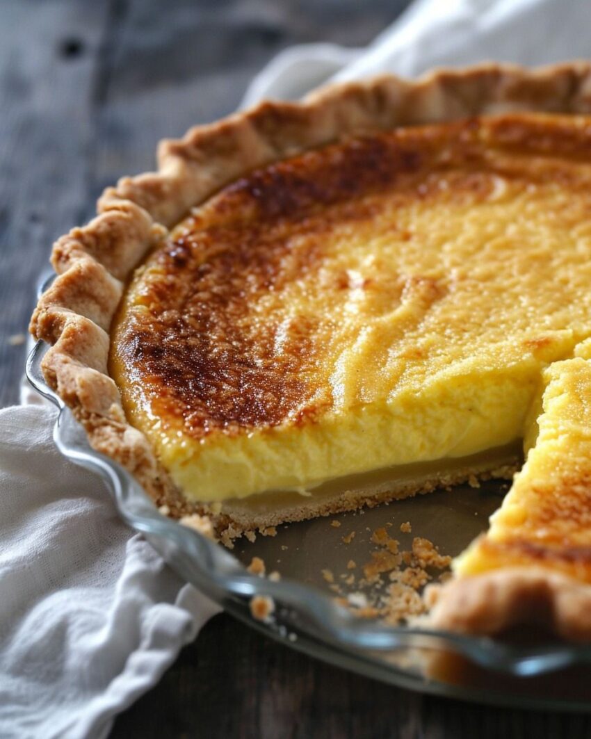 This pie has a smooth, delicate texture with a slight jiggle when cooled. Would you like a version that uses evaporated milk, includes a crustless option, or something else?