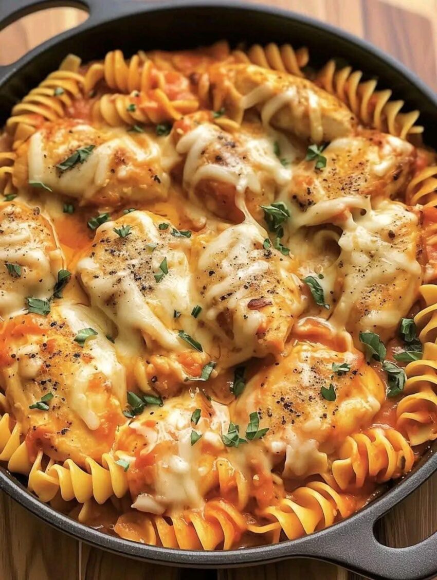 One-Pot Chicken Parmesan Pasta is a great way to enjoy the flavors of Chicken Parmesan without the extra mess or effort of making it in layers. Everything comes together in one pot for a quick and easy meal! Here’s a simple recipe for it: