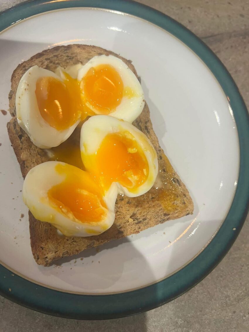 ~3 minutes: softly set white, runny yolk