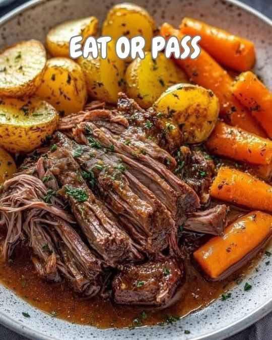 Here’s a comforting, classic recipe for Pot Roast with Potatoes and Carrots — tender beef, melt-in-your-mouth vegetables, and a rich, savory gravy. Perfect for Sunday dinner or cozy weeknight meals.