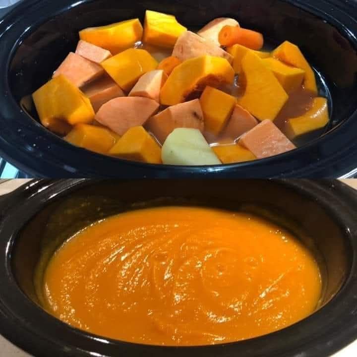 Use an immersion blender to purée the soup until smooth directly in the slow cooker.