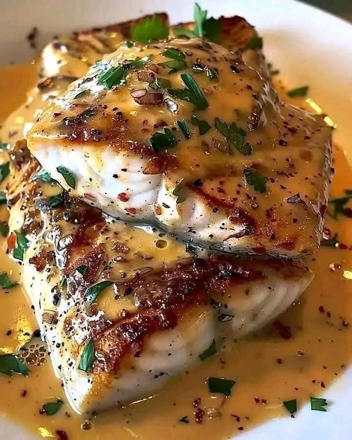 Spoon the creamy Creole sauce over the cooked red snapper.