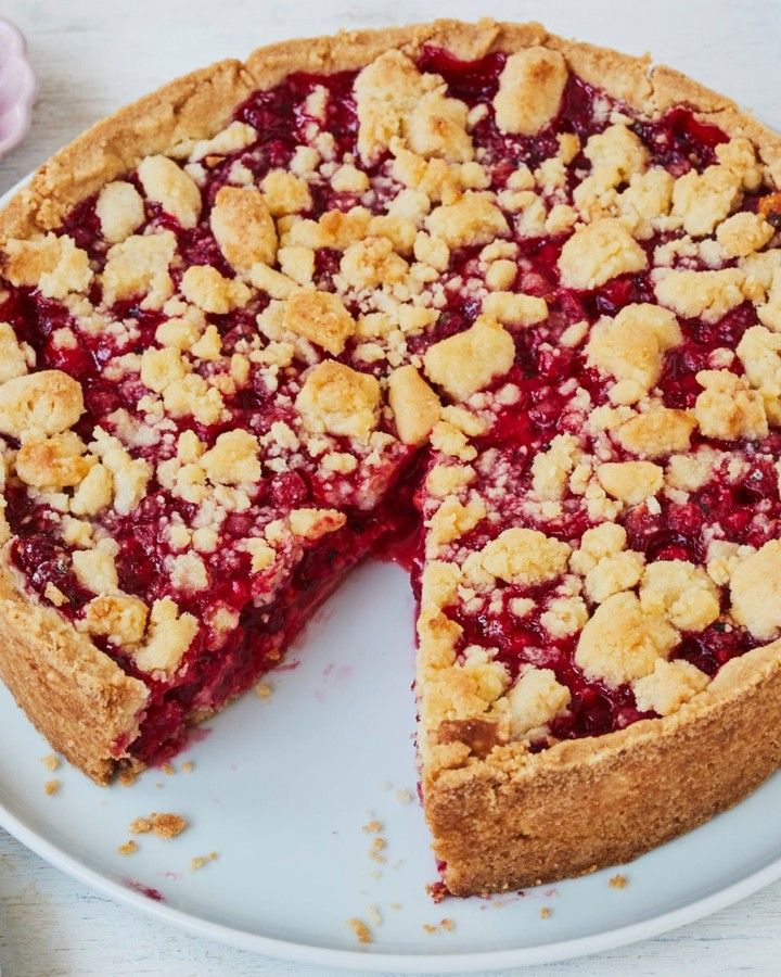 Here’s a delightful Redcurrant Crumble Cake recipe — soft, buttery cake layered with tart redcurrants and finished with a golden, crunchy crumble topping. Perfect for summer afternoons, tea time, or light desserts!