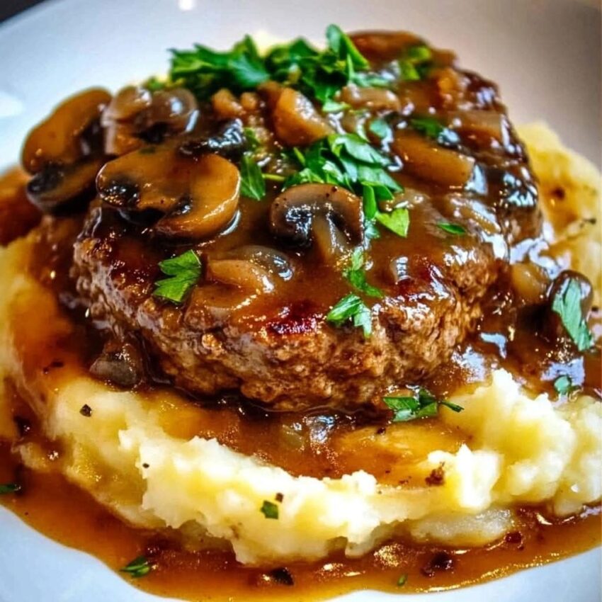 🥩 Salisbury Steak with Garlic Mashed Potatoes & Mushroom-Onion Gravy