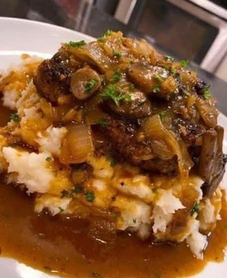 🥩 Salisbury Steak with Mashed Potatoes and Mushroom Gravy