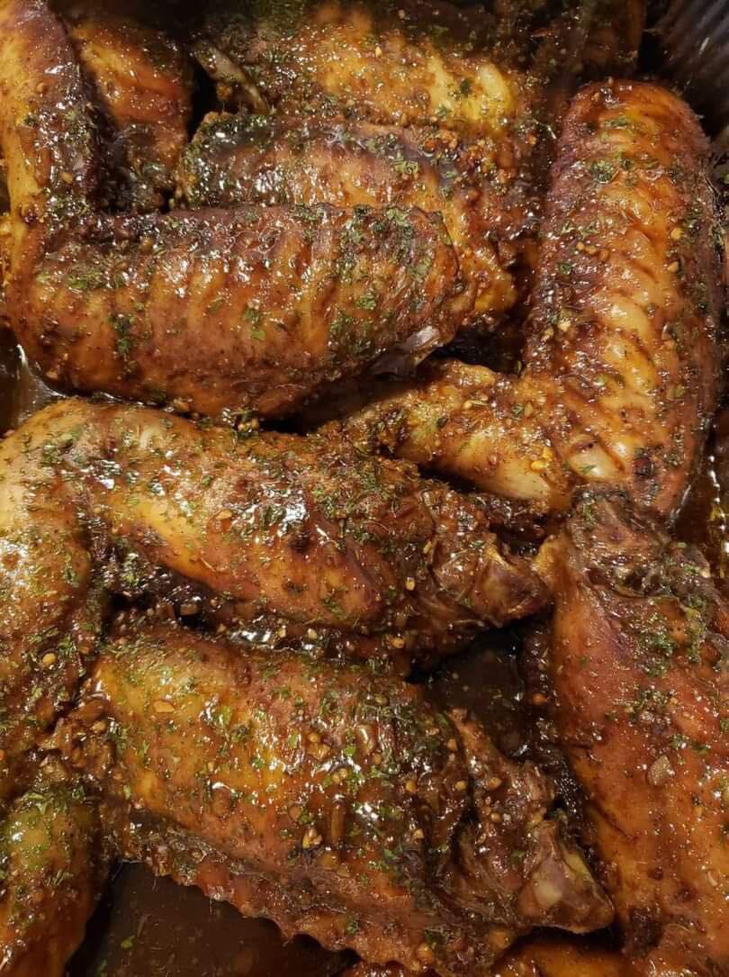 • Cover the pan tightly with foil and bake for 1.5 to 2 hours until wings are tender.
