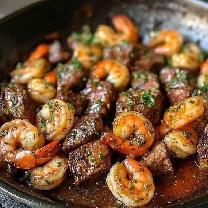 Toss the shrimp and steak separately with jerk seasoning, olive oil, and a pinch of salt and pepper. Let marinate for at least 15 minutes.